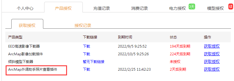 5、外业图片查看功能授权与插件授权为两个单独授权、需要外业图片查看功能的小伙伴,需到经纬达官网www.earthg.cn,账户个人中心“产品授权”中获取授权。