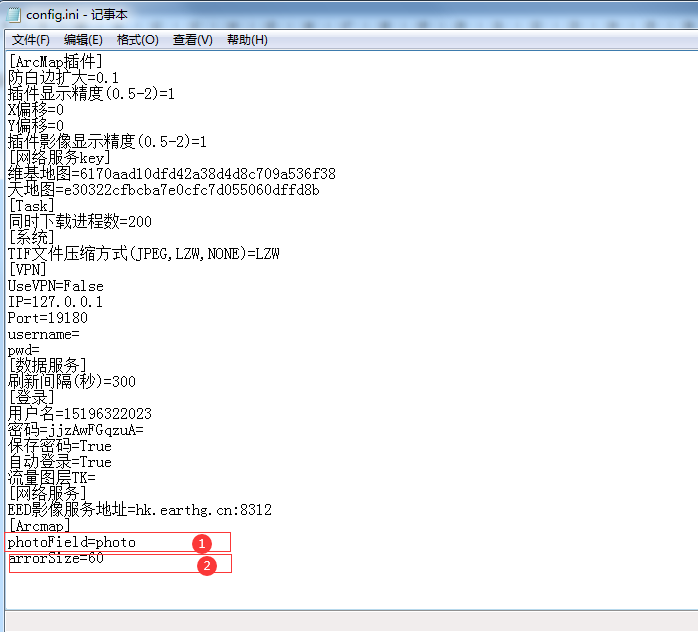 4、如感觉要素旁的箭头过小或过大,请在Arcgis的“bin”文件夹里找到“config.ini配置文件”修改,同时我们上面说到的文件夹名更换和属性表字段名更换都在这个文件里修改