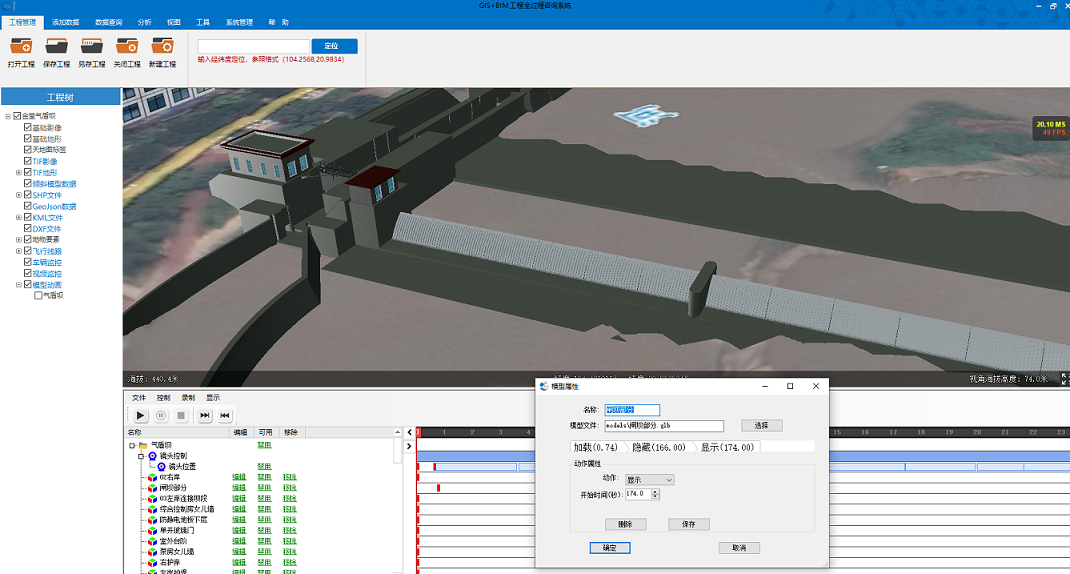 我们导入模型动画后,可通过要素目录树、时间轴控件、关键帧插入对动画进行操作、以此来达到自己想要的一个效果。