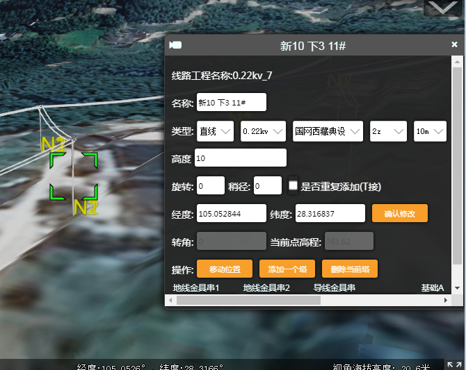 可手动设置坐标、材料、当前杆塔的移动。
